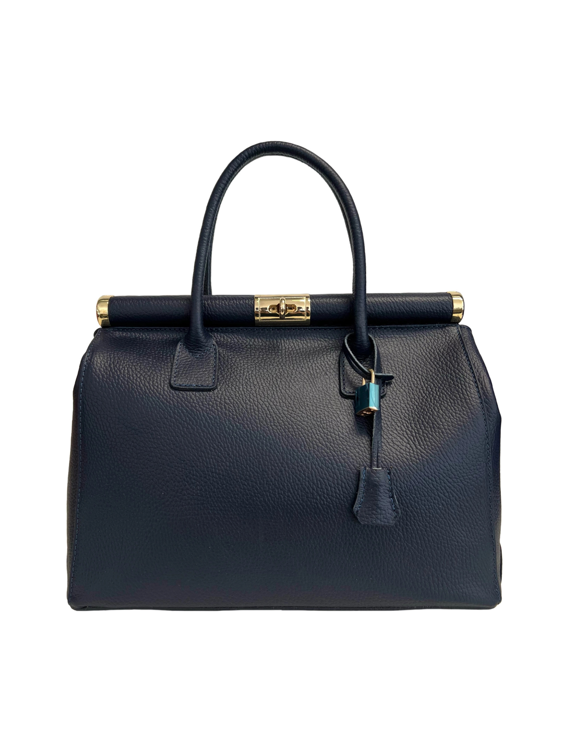 Elevate your everyday style with this timeless premium leather handbag, where elegance meets practicality. Crafted from luxurious leather, this classic bag boasts a refined silhouette, complemented by striking gold-tone metal hardware and a signature gold-tone lock that adds a touch of sophistication. Whether you carry it by the sleek top handles or opt for hands-free convenience with the detachable shoulder strap, this versatile piece is designed to seamlessly transition from day to night.