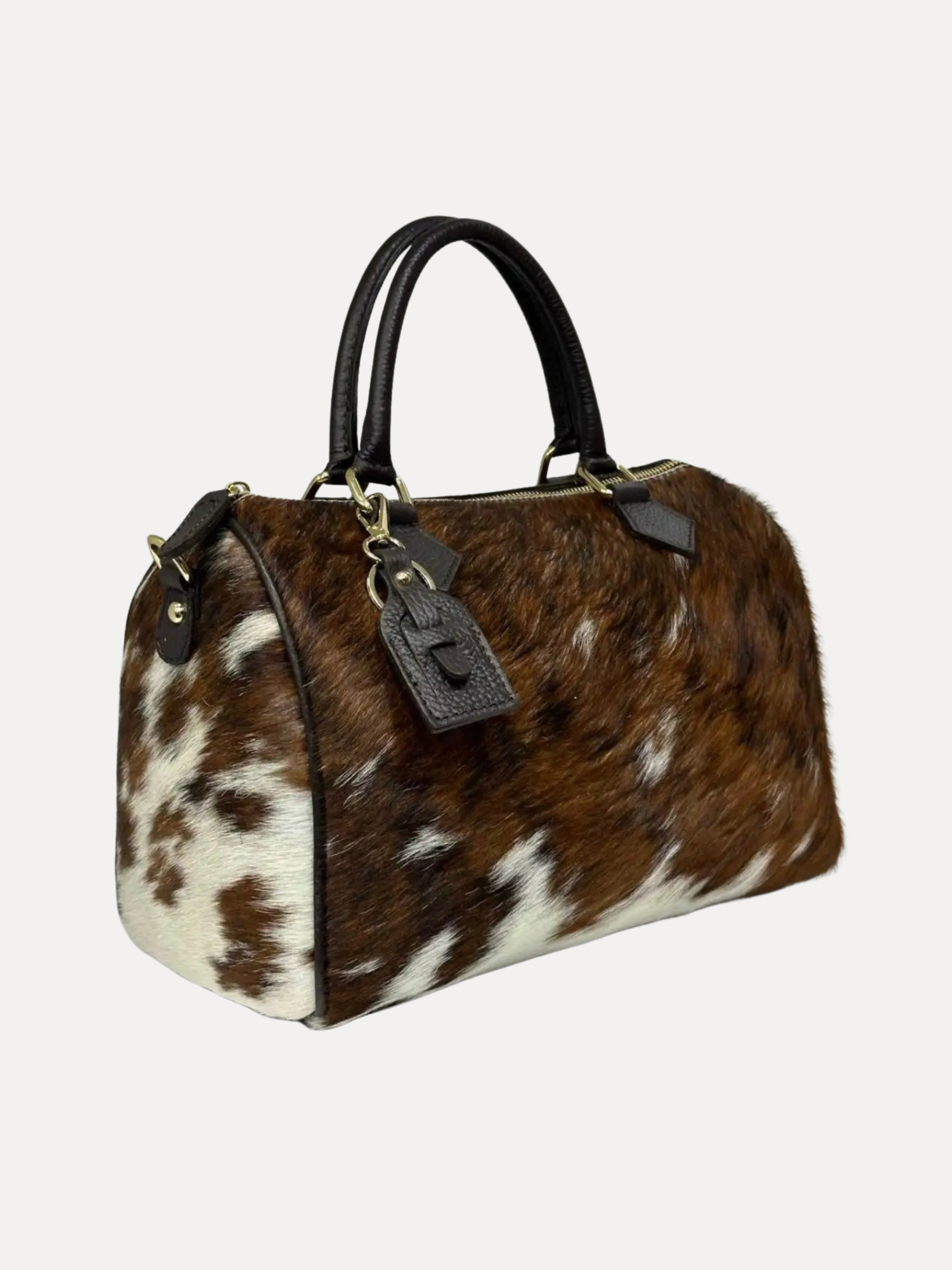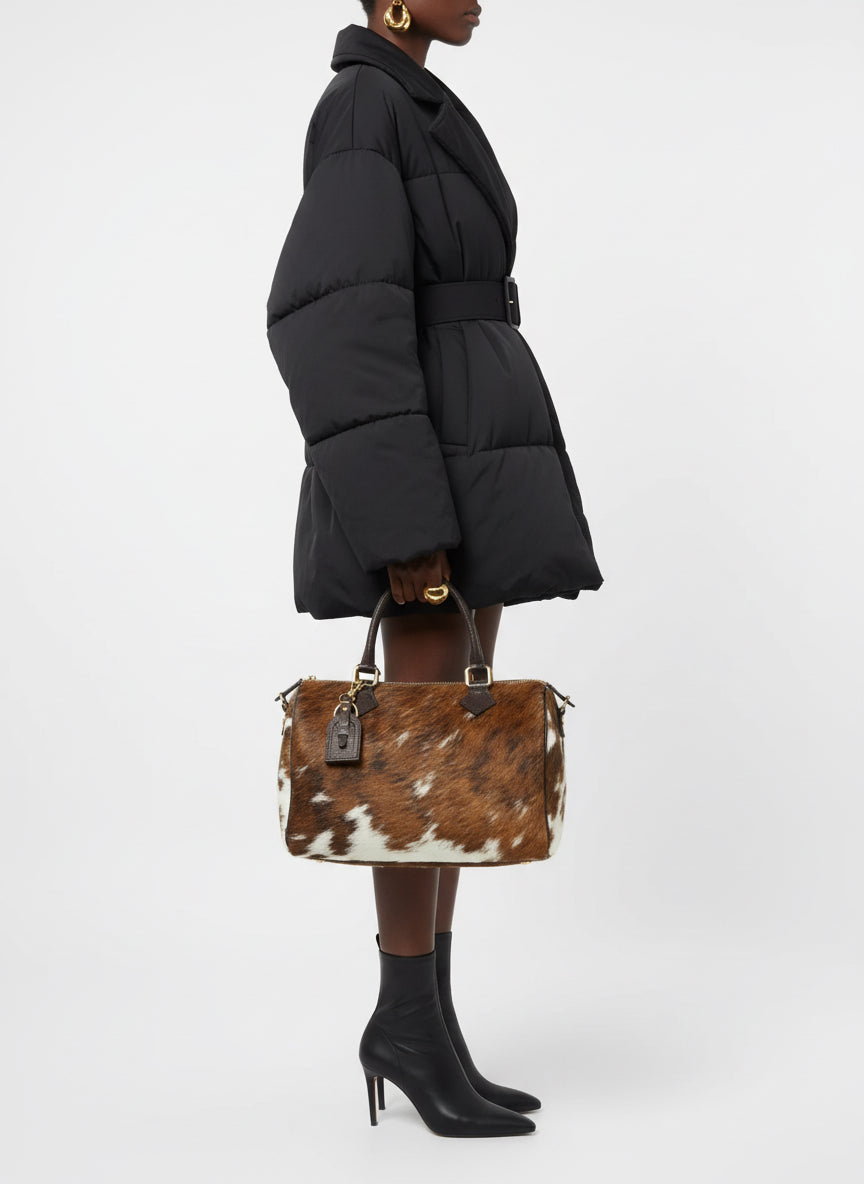 Bold, tactile, and unmistakably luxe, the Voyage Calf Hair Bag brings sculptural elegance to a timeless silhouette. Crafted from premium calf hair with rich natural texture, no two bags are ever identical — making each piece a true collector’s item.