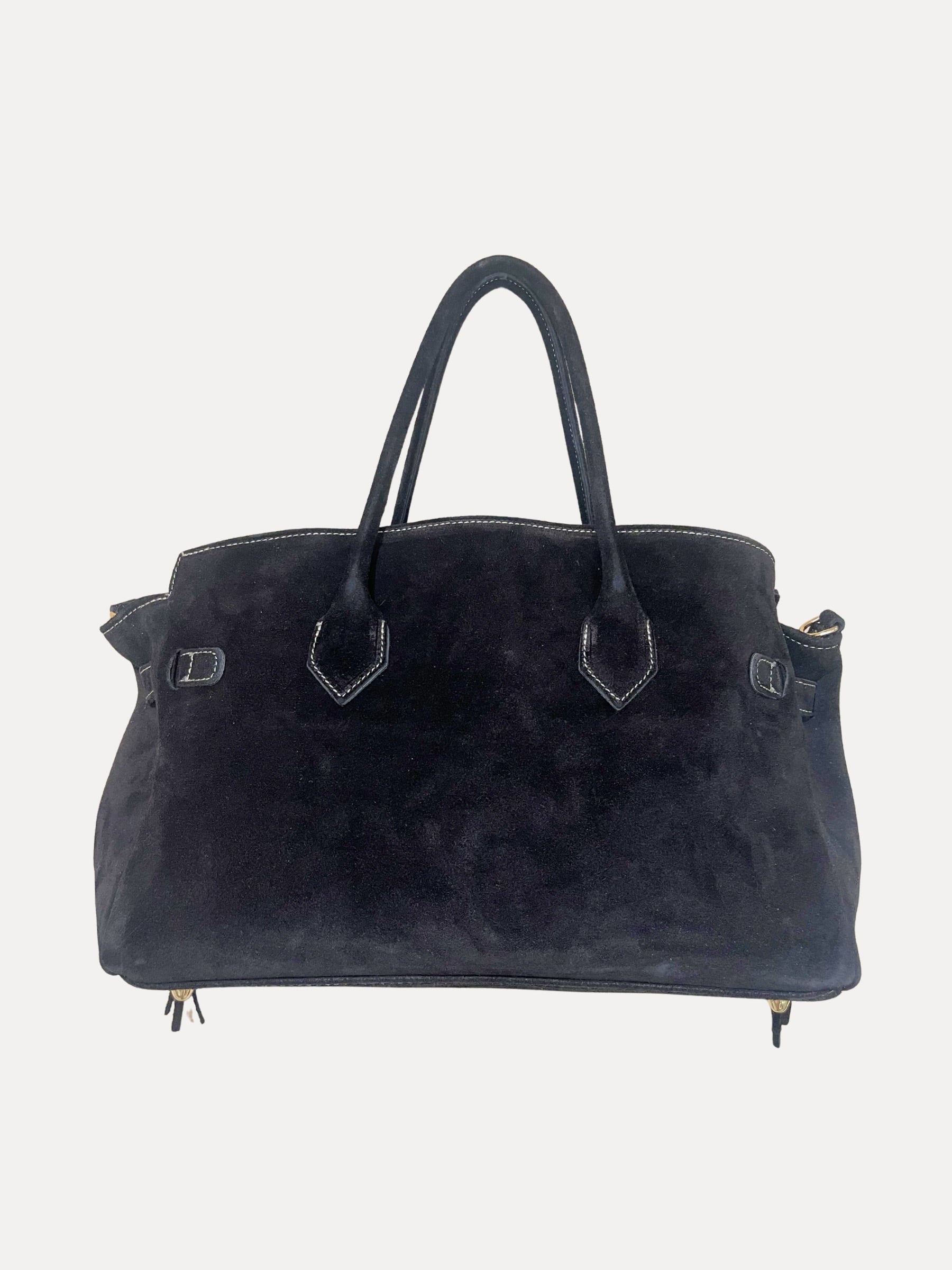 Rolled suede handles + detachable wide suede shoulder strap