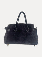 Thoughtfully designed for style and function, it features rolled suede handles for an elegant carry and a detachable wide suede shoulder strap for versatile wear. Inside, a secure top zipper closure opens to a lined interior with two spacious compartments and a side zipper pocket to keep your essentials perfectly organized.