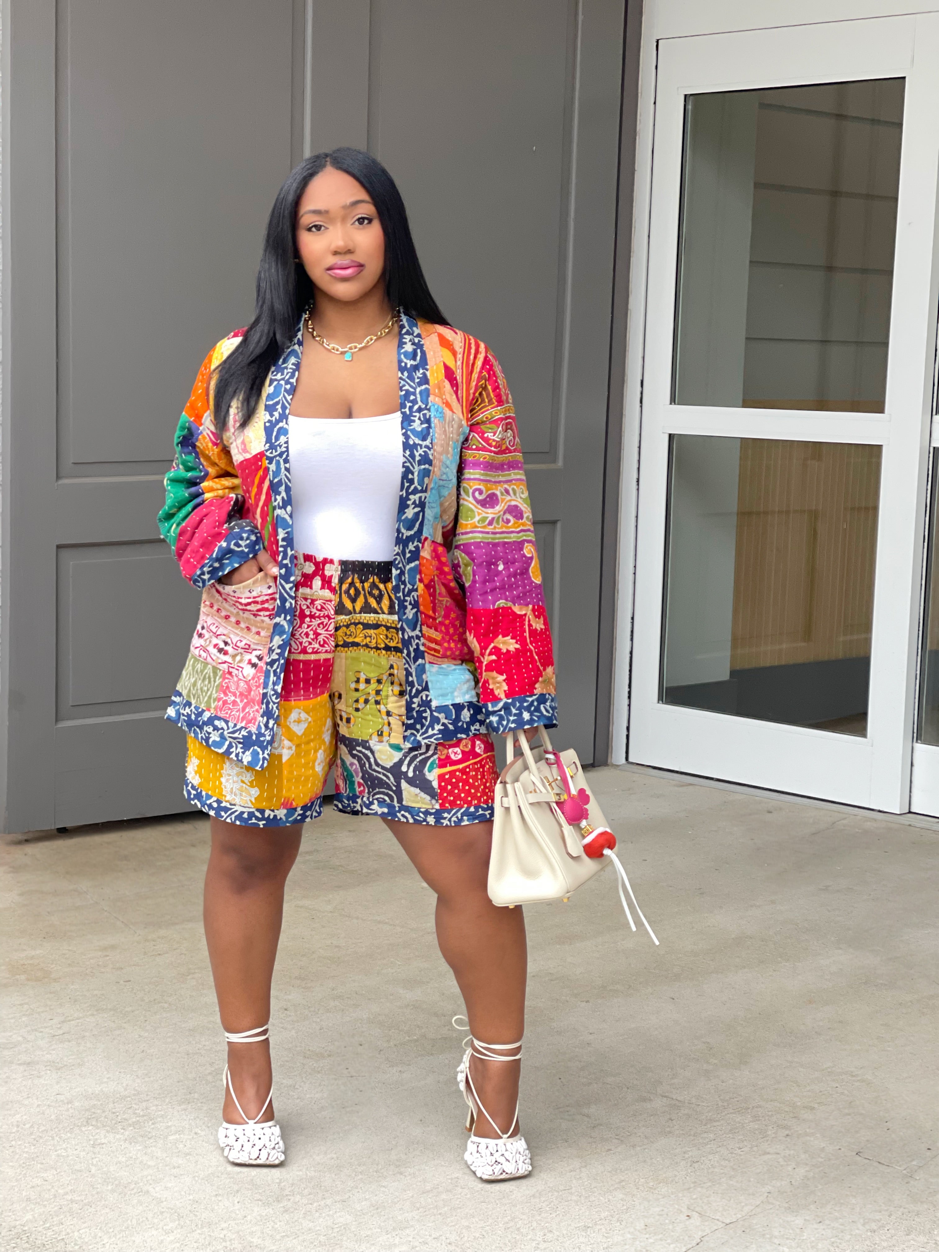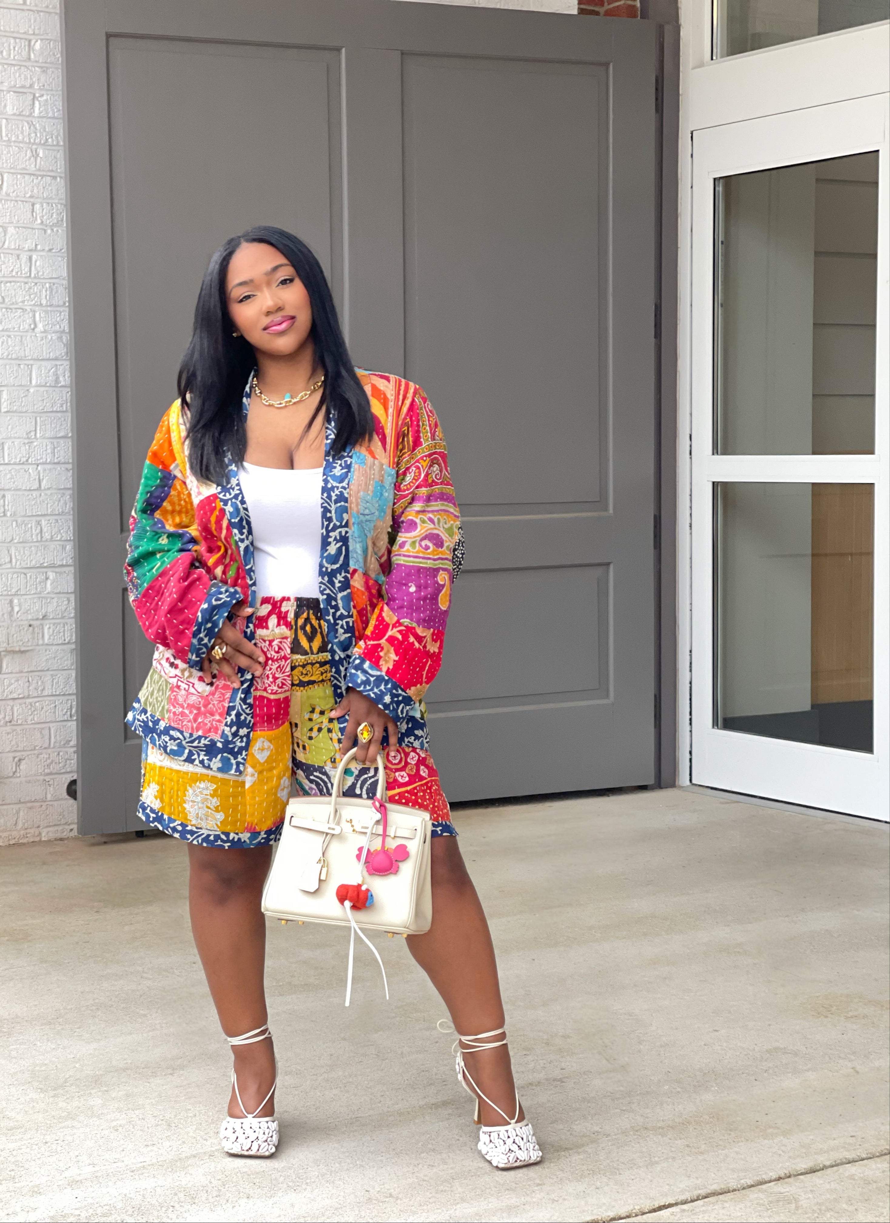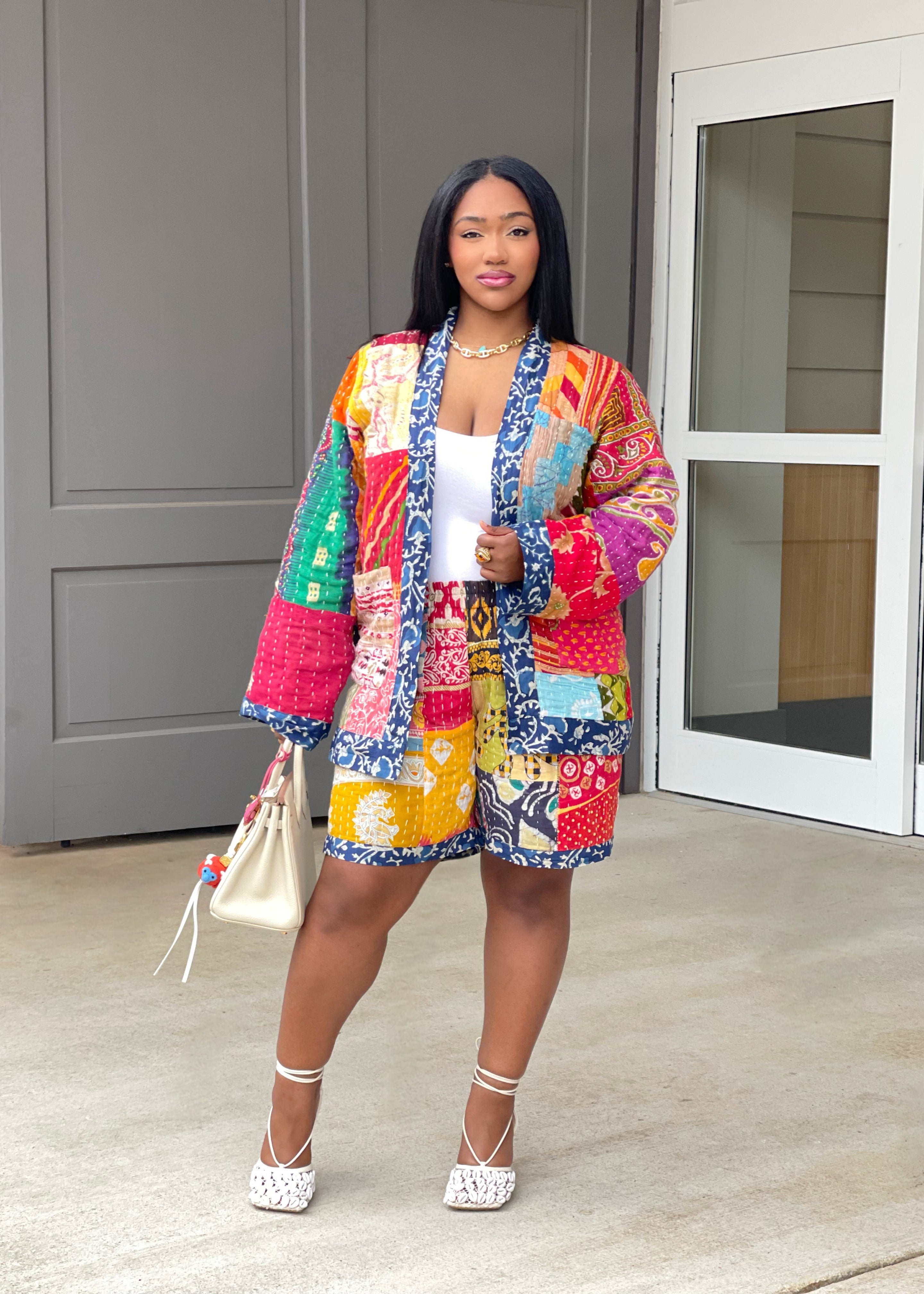 Elevate your layers with the Amara Jacket — a one-of-a-kind, artisan-made piece crafted from 100% cotton upcycled vintage saris. Hand-stitched by women artisans, this jacket blends bohemian soul with timeless elegance.