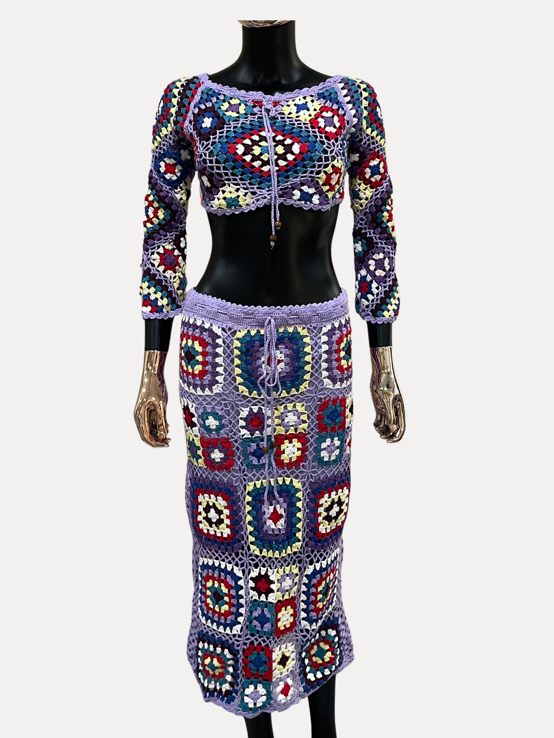 Effortlessly boho, endlessly chic—this crochet set is your summer style upgrade. Featuring a 3/4 sleeve crop top with an airy open-knit design and a perfectly paired midi skirt with a string-tie waist. The skirt is half-lined for just the right amount of coverage while keeping that breezy vibe. Perfect for beach days, brunches, or golden hour strolls.