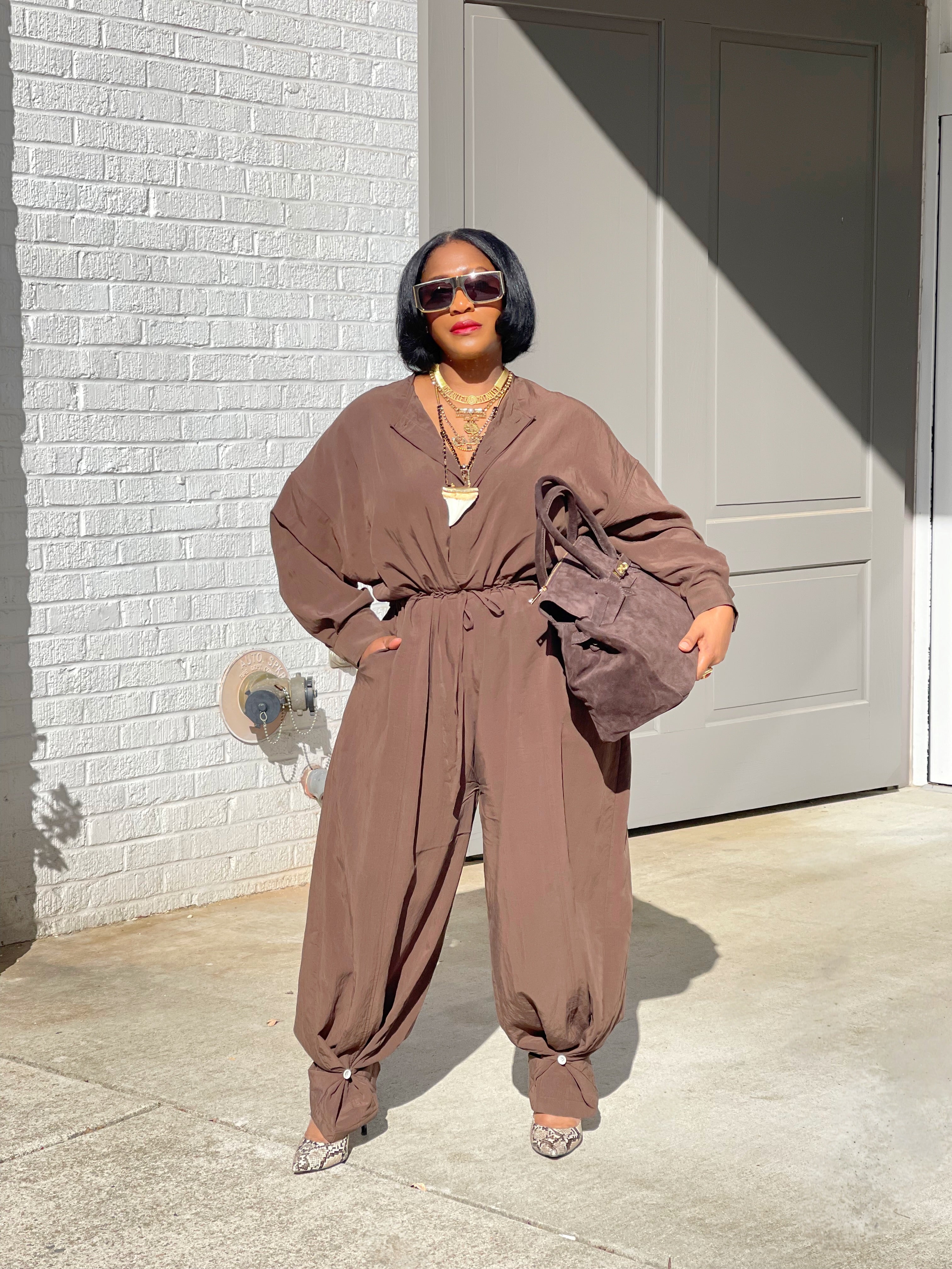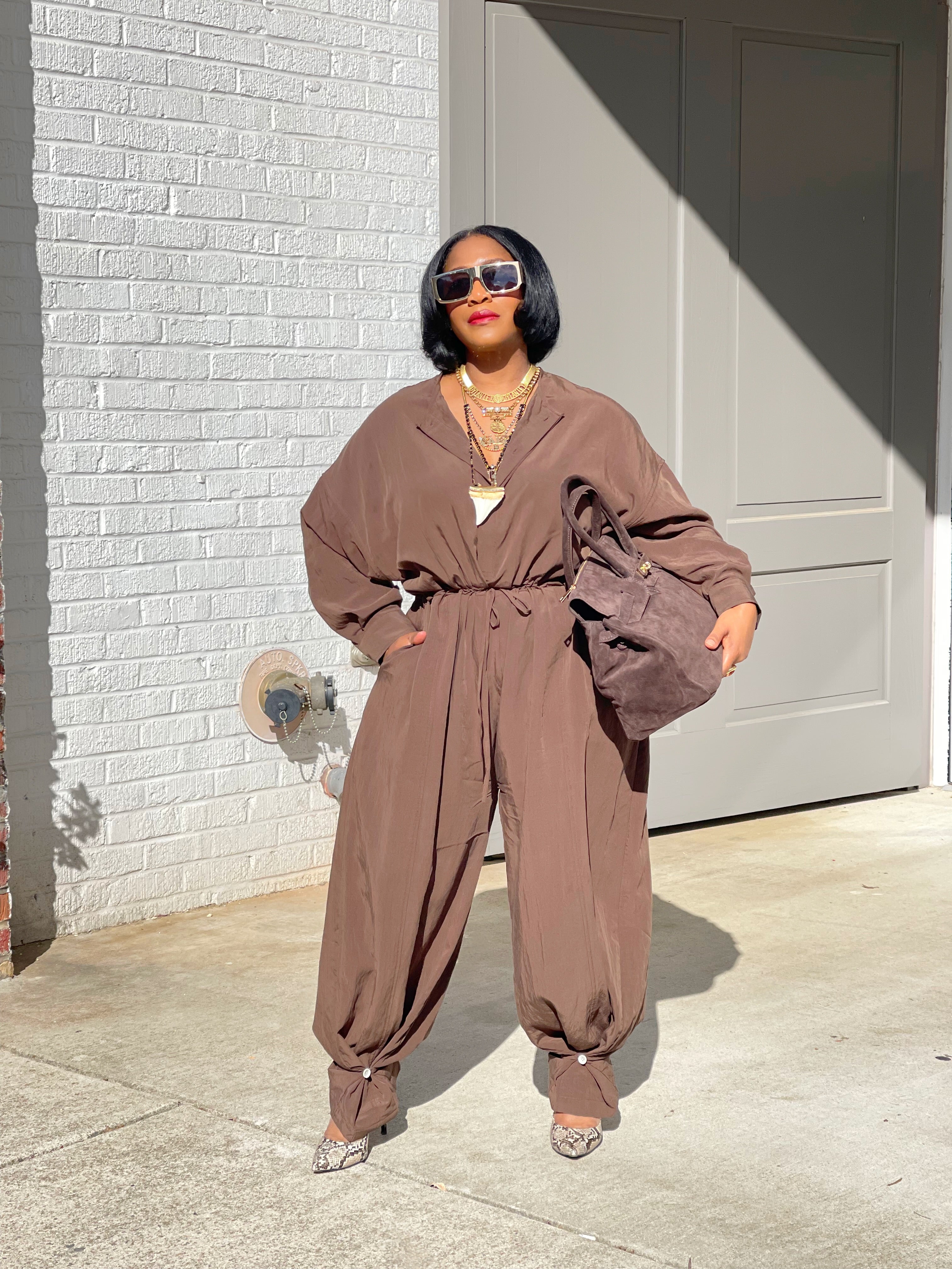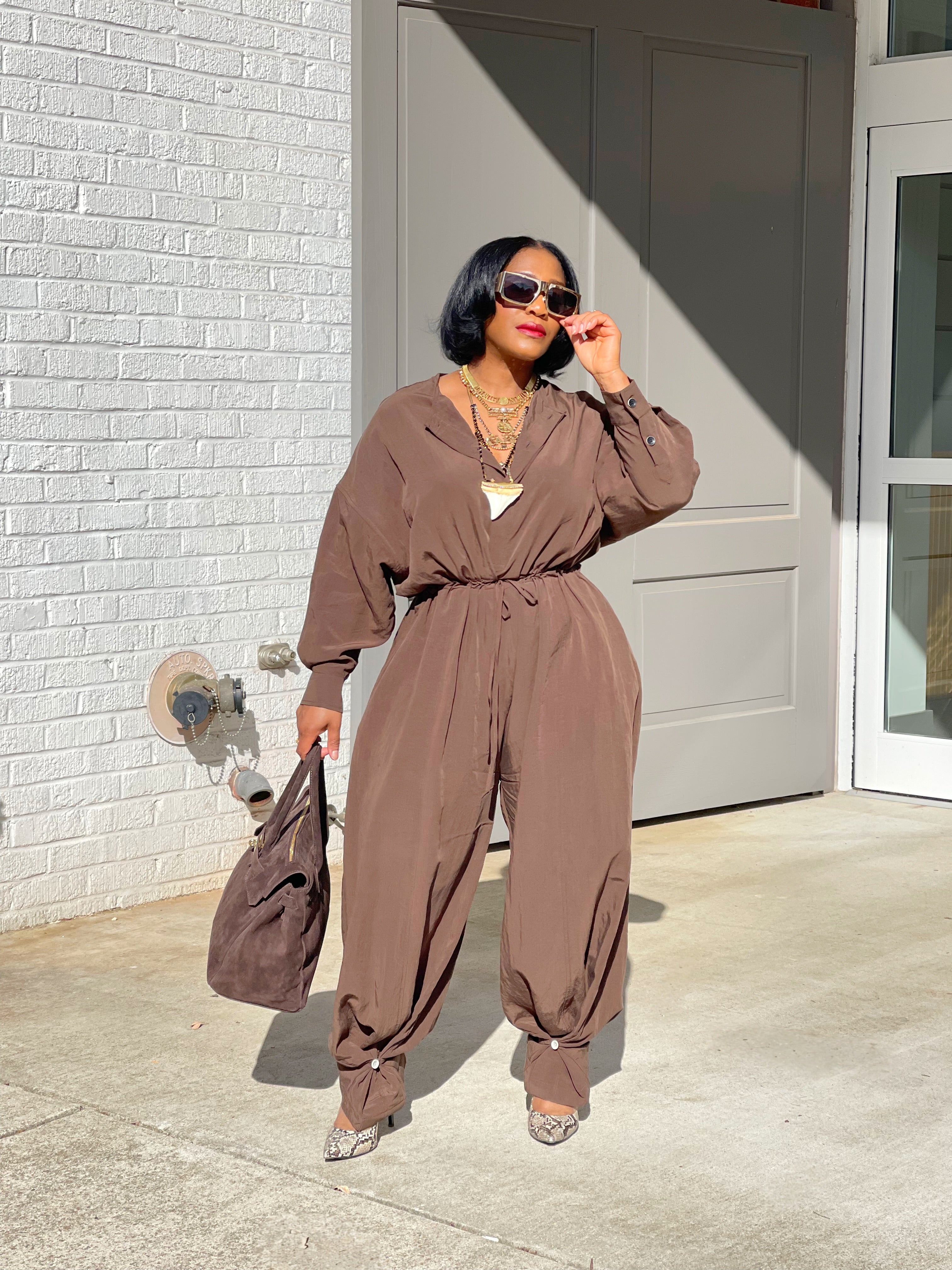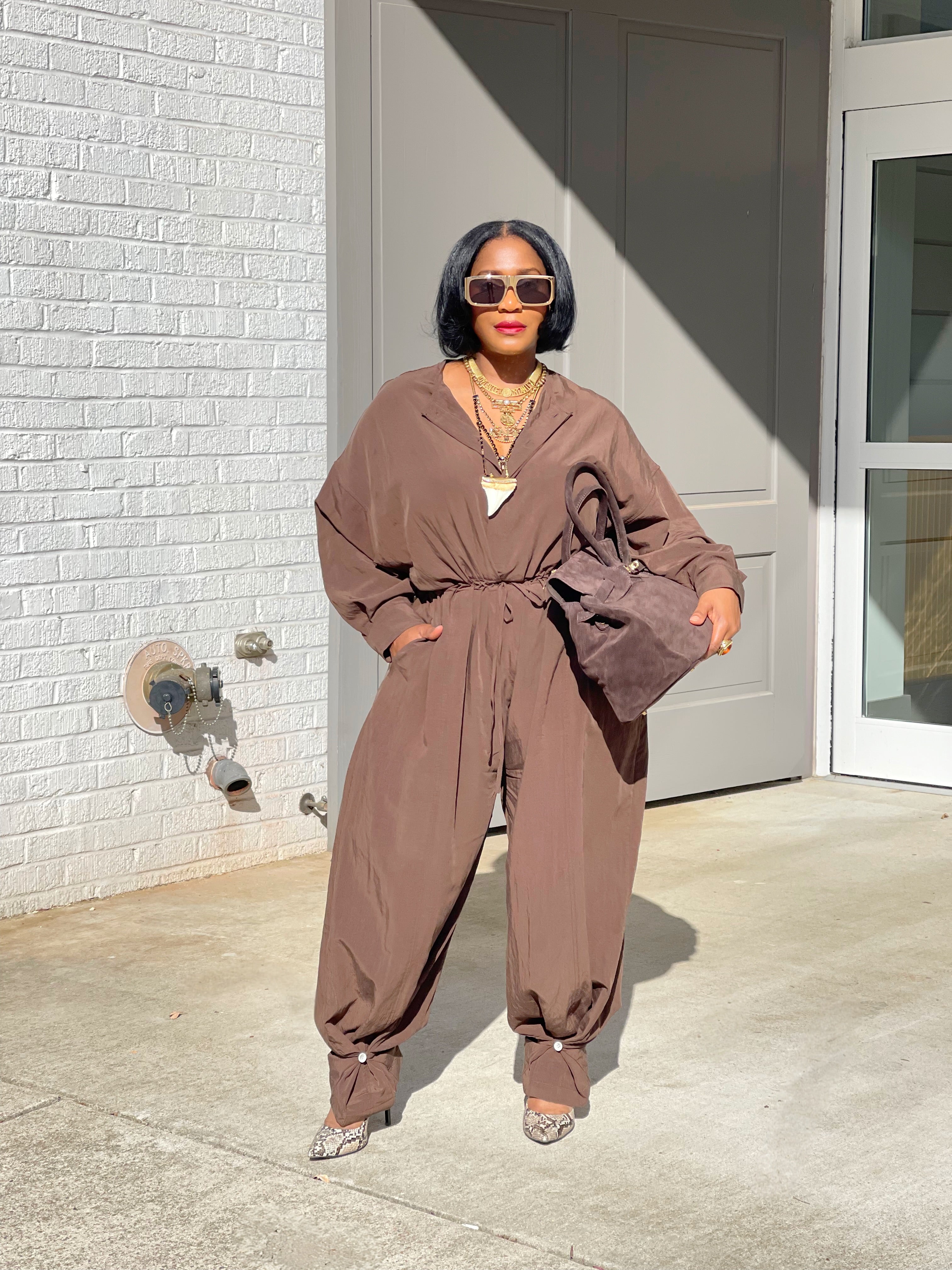 Effortlessly cool meets all-day comfort in this utility-inspired blush pink jumpsuit. Crafted from a lightweight, nylon-style textile with a subtle sheen, it’s designed with a relaxed silhouette that moves with you — whether you’re off-duty or on the go.