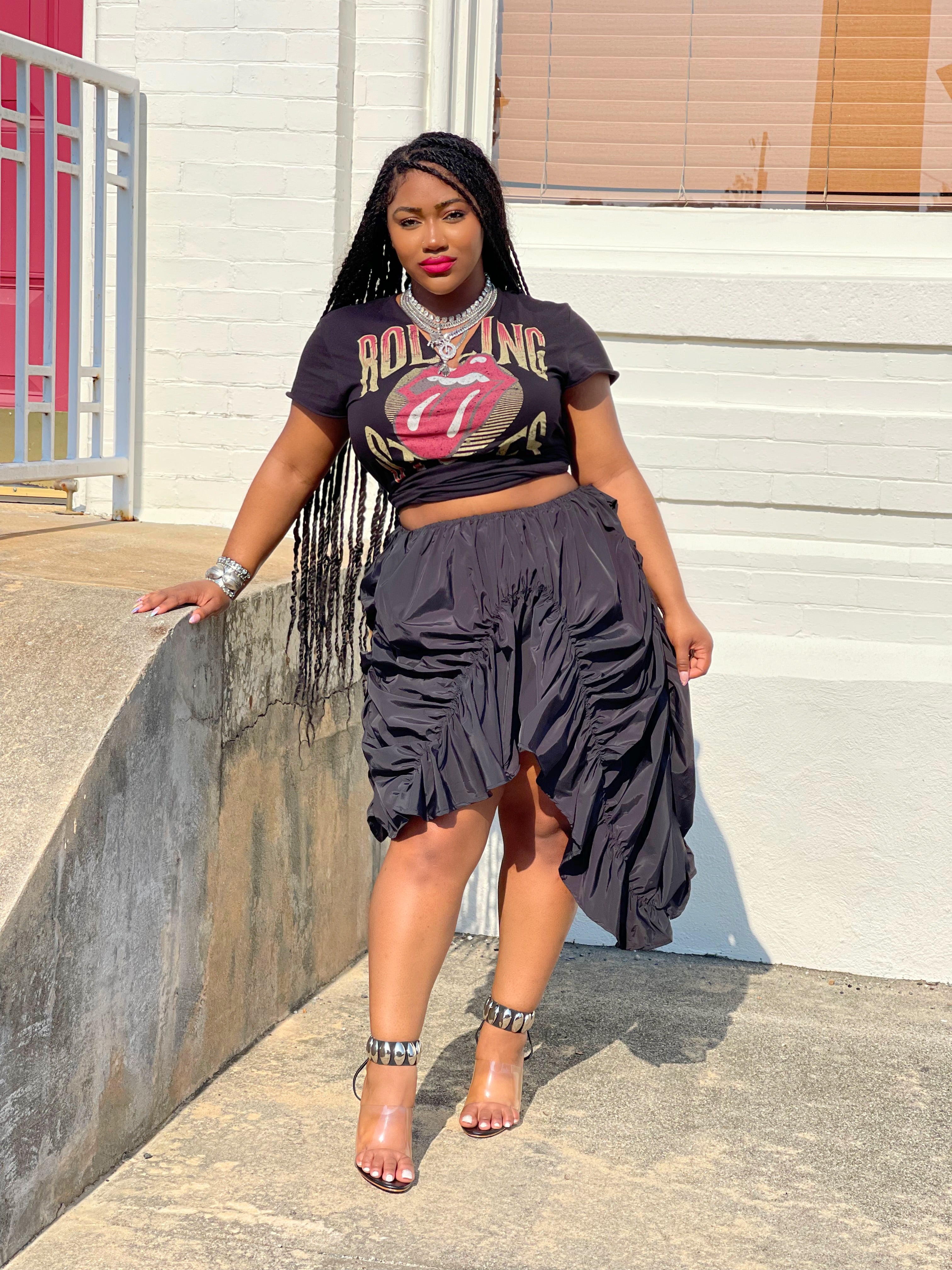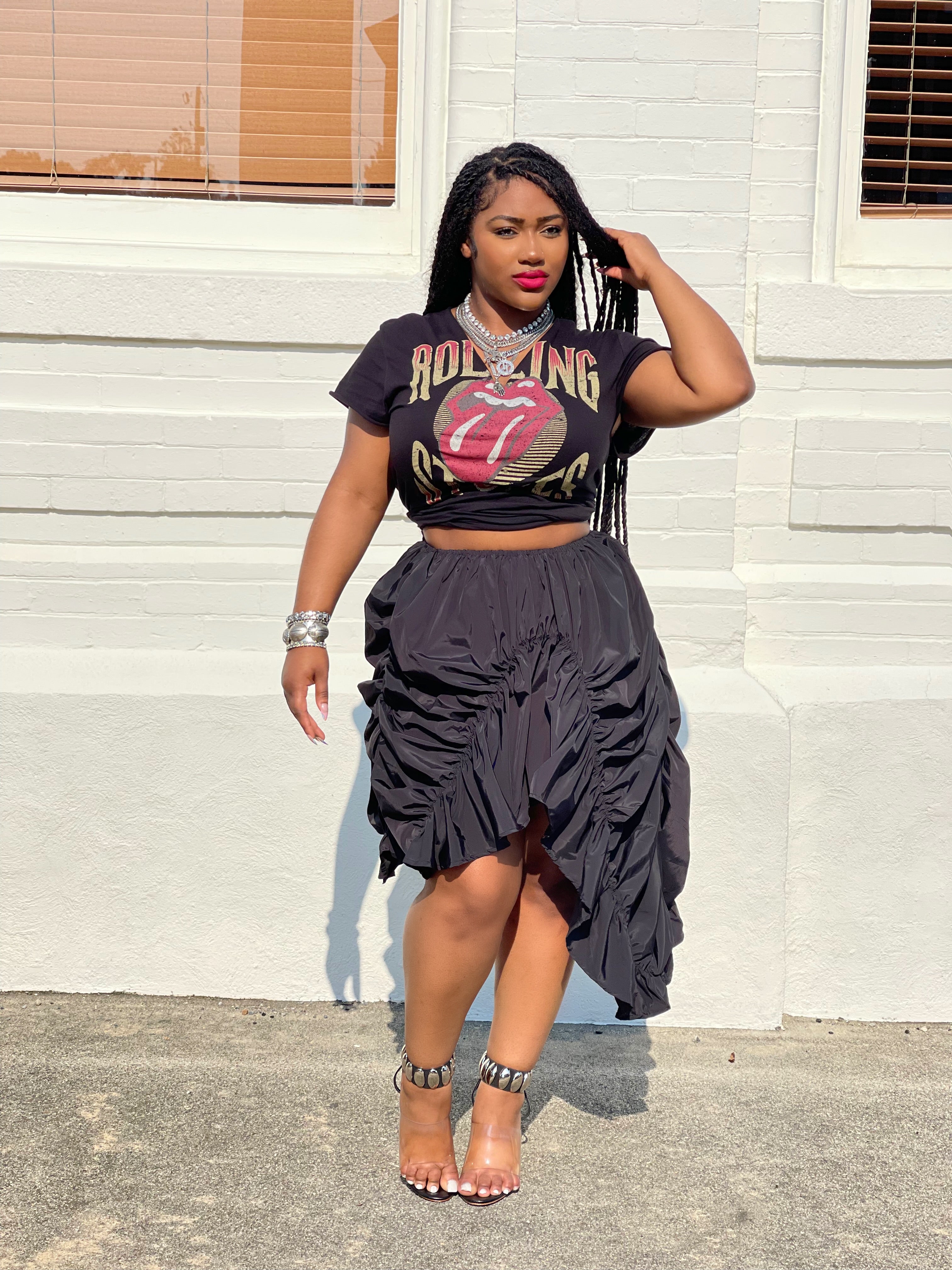 Indulge in the ultimate fashion statement with our Paige Mini Skirt. With intricate ruching and an asymmetrical design, this eye-catching skirt creates a stunning silhouette. The elastic waist ensures a comfortable and effortless fit. Pair it with a graphic or plain t-shirt, a moto jacket, and either heels or sneakers for a versatile and chic look. Elevate your wardrobe with this must-have piece.