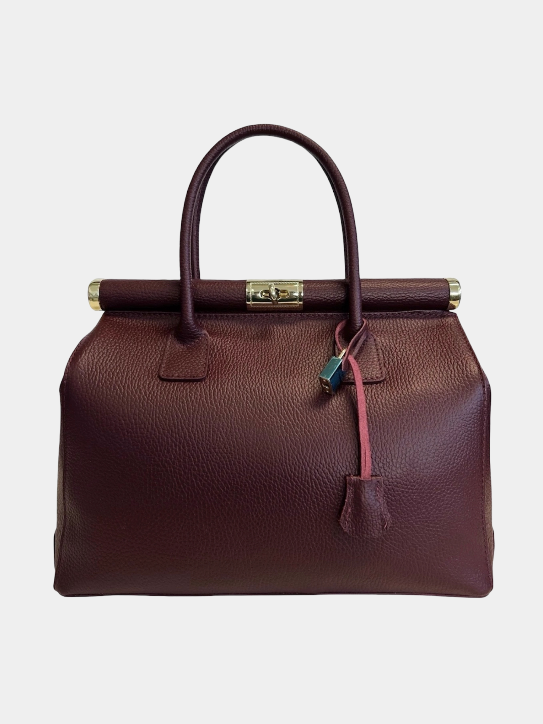 Elevate your everyday style with this timeless premium leather handbag, where elegance meets practicality. Crafted from luxurious leather, this classic bag boasts a refined silhouette, complemented by striking gold-tone metal hardware and a signature gold-tone lock that adds a touch of sophistication. Whether you carry it by the sleek top handles or opt for hands-free convenience with the detachable shoulder strap, this versatile piece is designed to seamlessly transition from day to night.