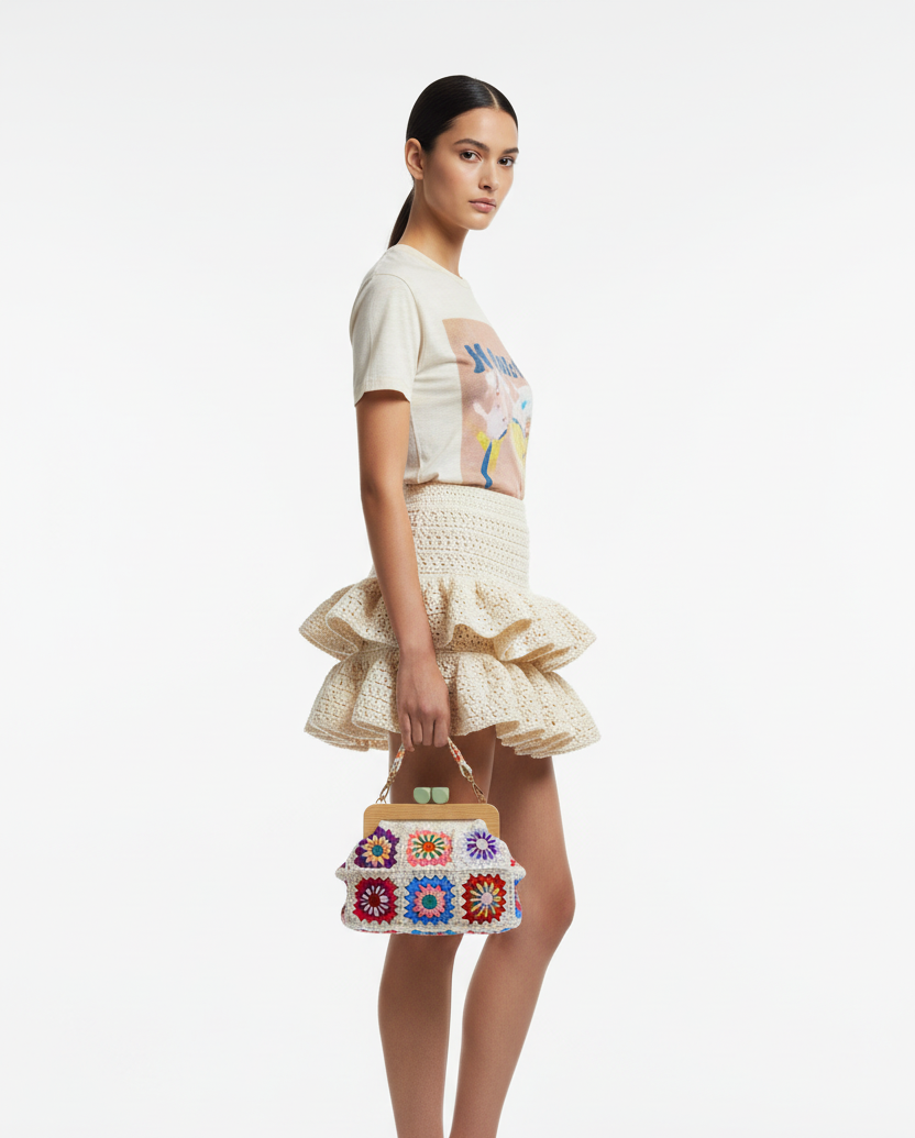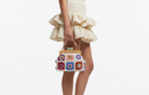 Introducing the Alana Clutch, a stunning addition to your wardrobe. Made with luxurious knitted material, this clutch features a unique, colorful design and includes a contrasting detachable adjustable strap for added versatility. Fully lined for your convenience. Experience the boho chicness with the Alana Clutch. Available in other colors.