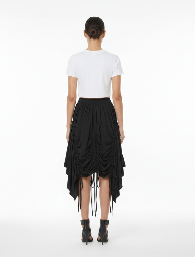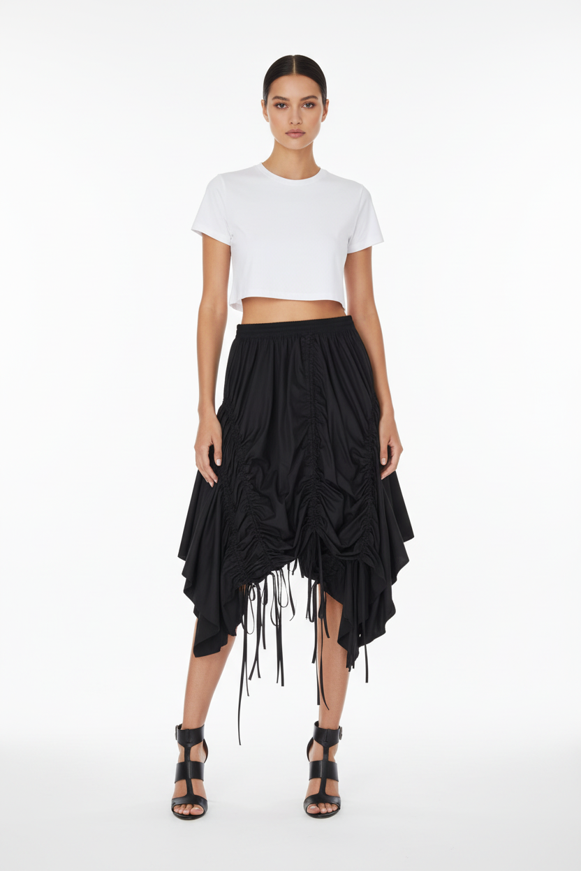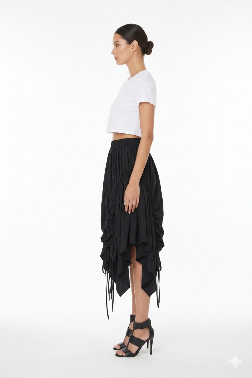 GOLDxTEAL designer ruched mini skirt. Stylish asymmetrical mini skirt.