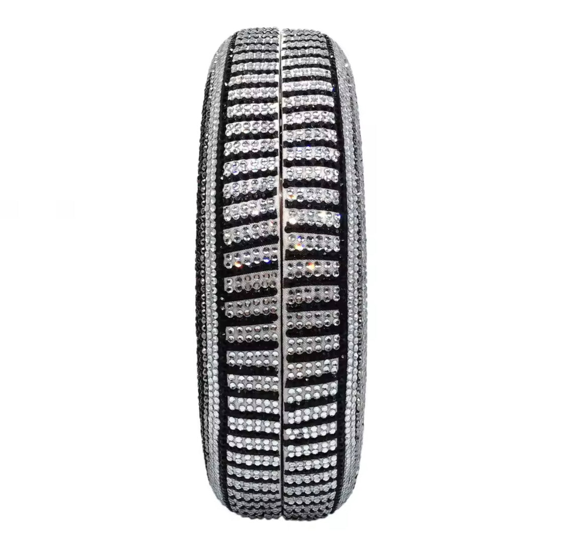 Striking and symbolic, the Crystal Sovereign Disc Clutch is sculpted in a bold circular silhouette and fully adorned in precision-set crystals for maximum brilliance. The structured hard-shell design features a secure closure and a removable chain, allowing it to be carried as a statement clutch or worn effortlessly on the shoulder.
