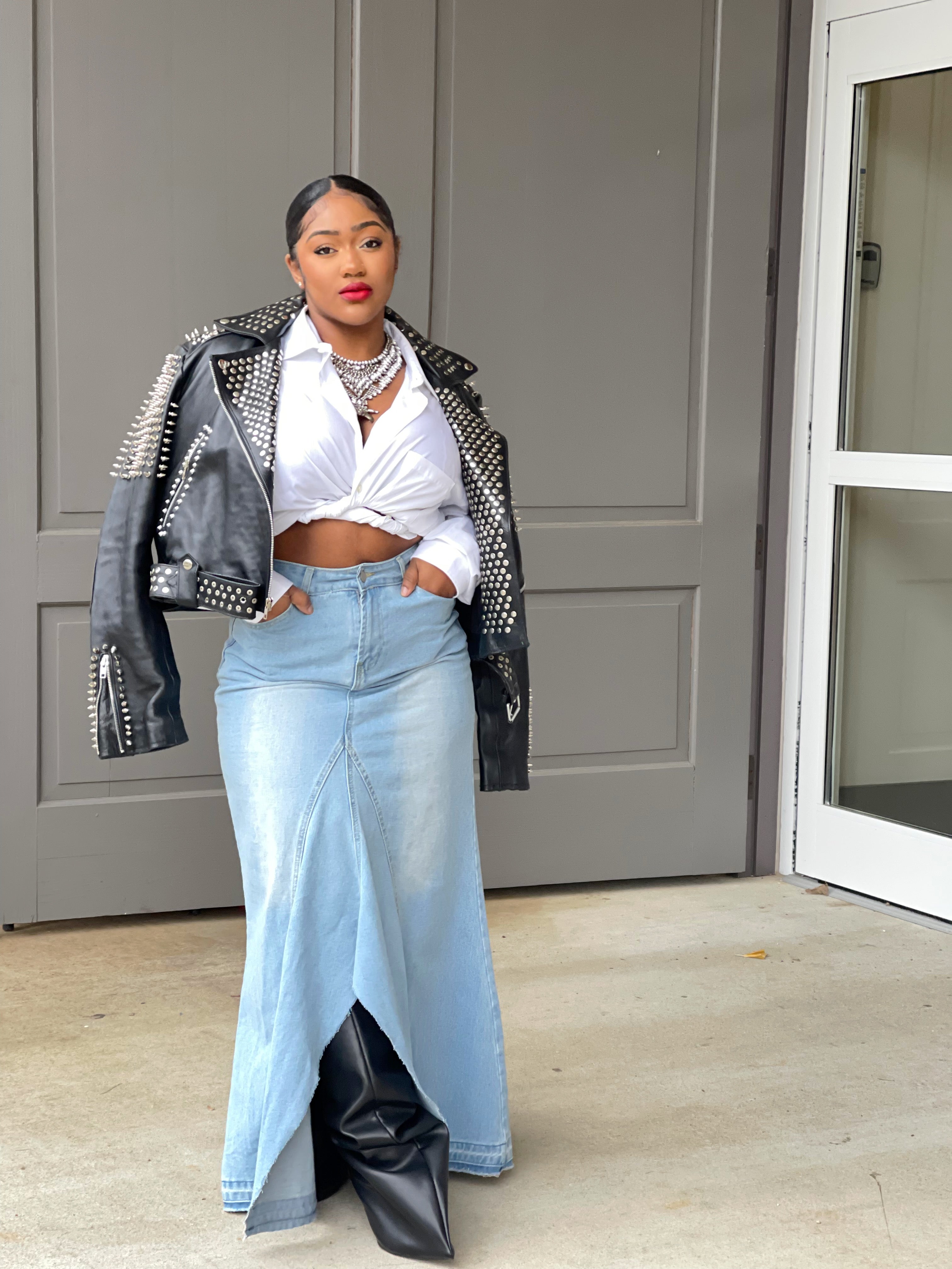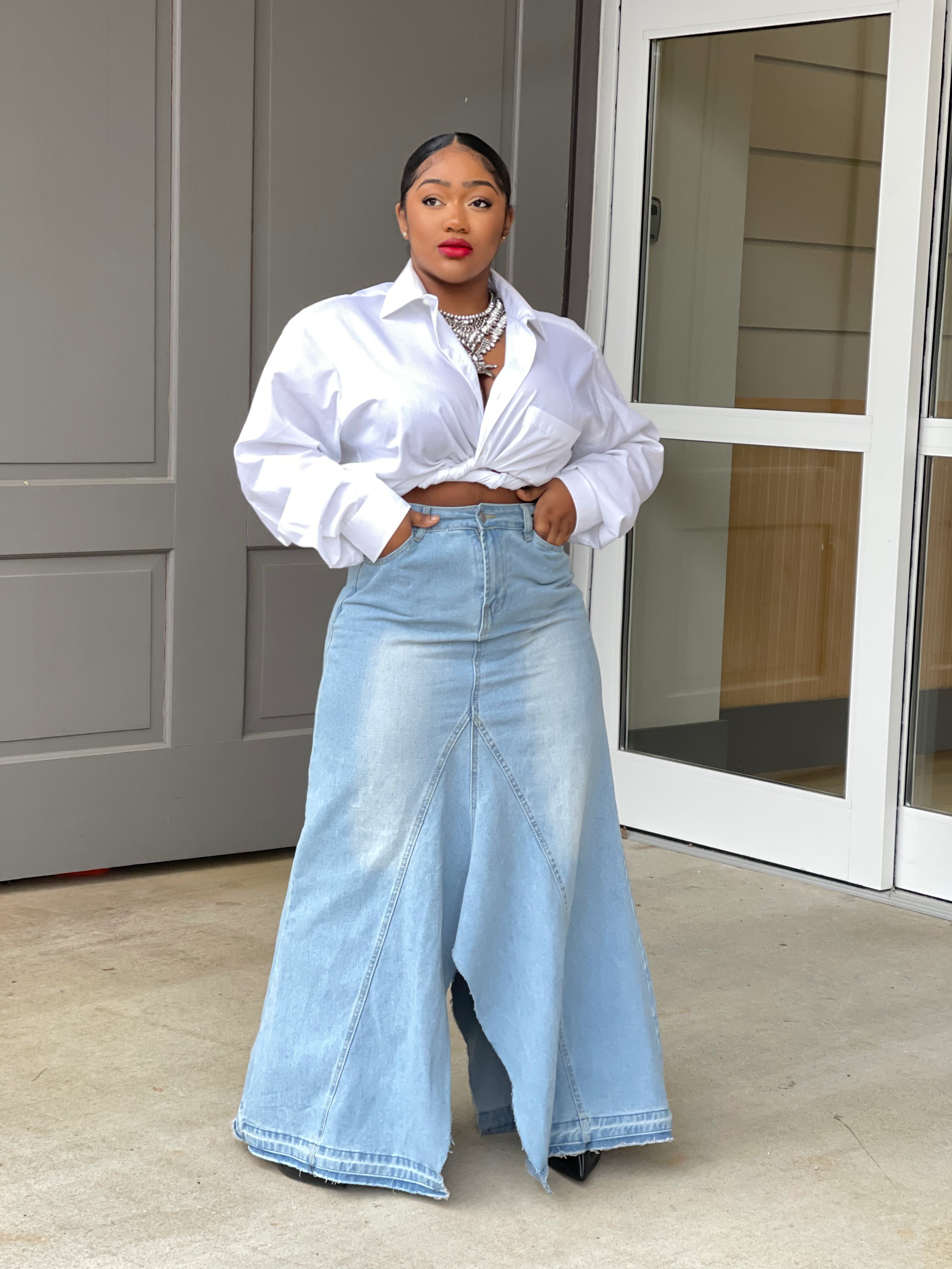 Introducing the Bella Denim Skirt - the perfect addition to your capsule wardrobe! Crafted with lightweight denim and featuring a high waist, front and back slits, and frayed hem, this skirt is both stylish and versatile. With two side and back pockets, it's also practical. Pair it with a graphic tee and chunky boots for an edgy look. Don't miss out on this must-have garment!