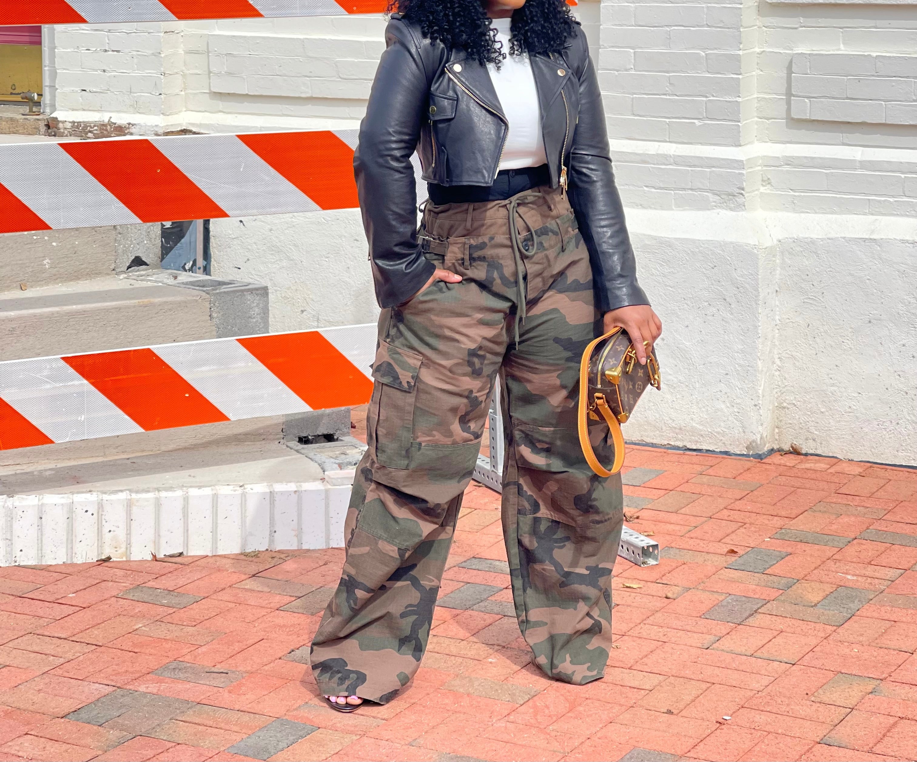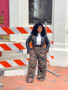 Cut in a relaxed-to-baggy silhouette that moves with you, the paneled layout lends subtle structure while the camouflage print keeps it unapologetically bold. Laid-back but never basic—these pants do the talking; you just walk the walk.
