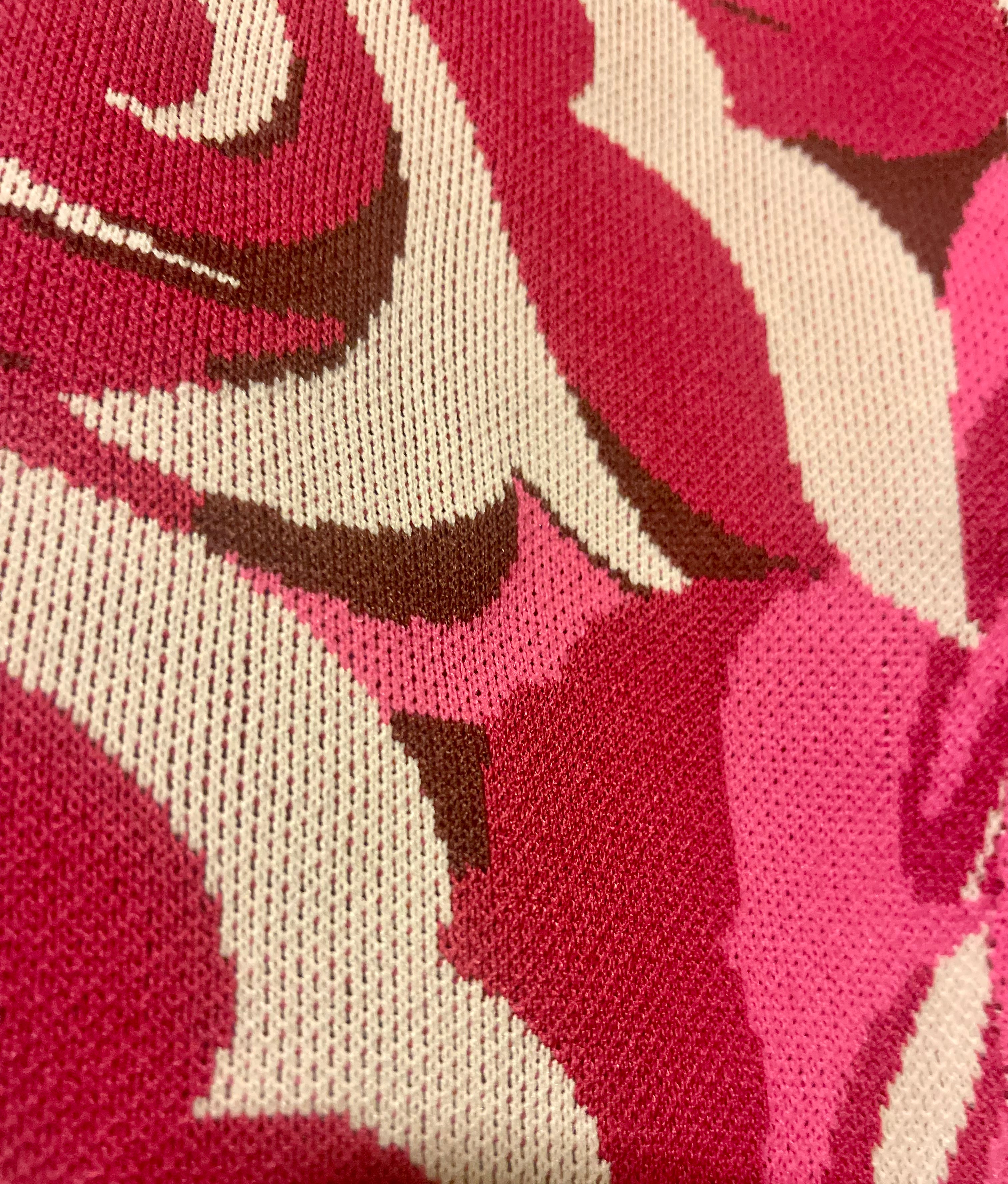 Satisfy your affinity for pink in this knitted mini dress featuring dramatic puff sleeves. This retro printed dress will hug your curves, style with your favorite heels or even sneakers for a stylish look all your own.