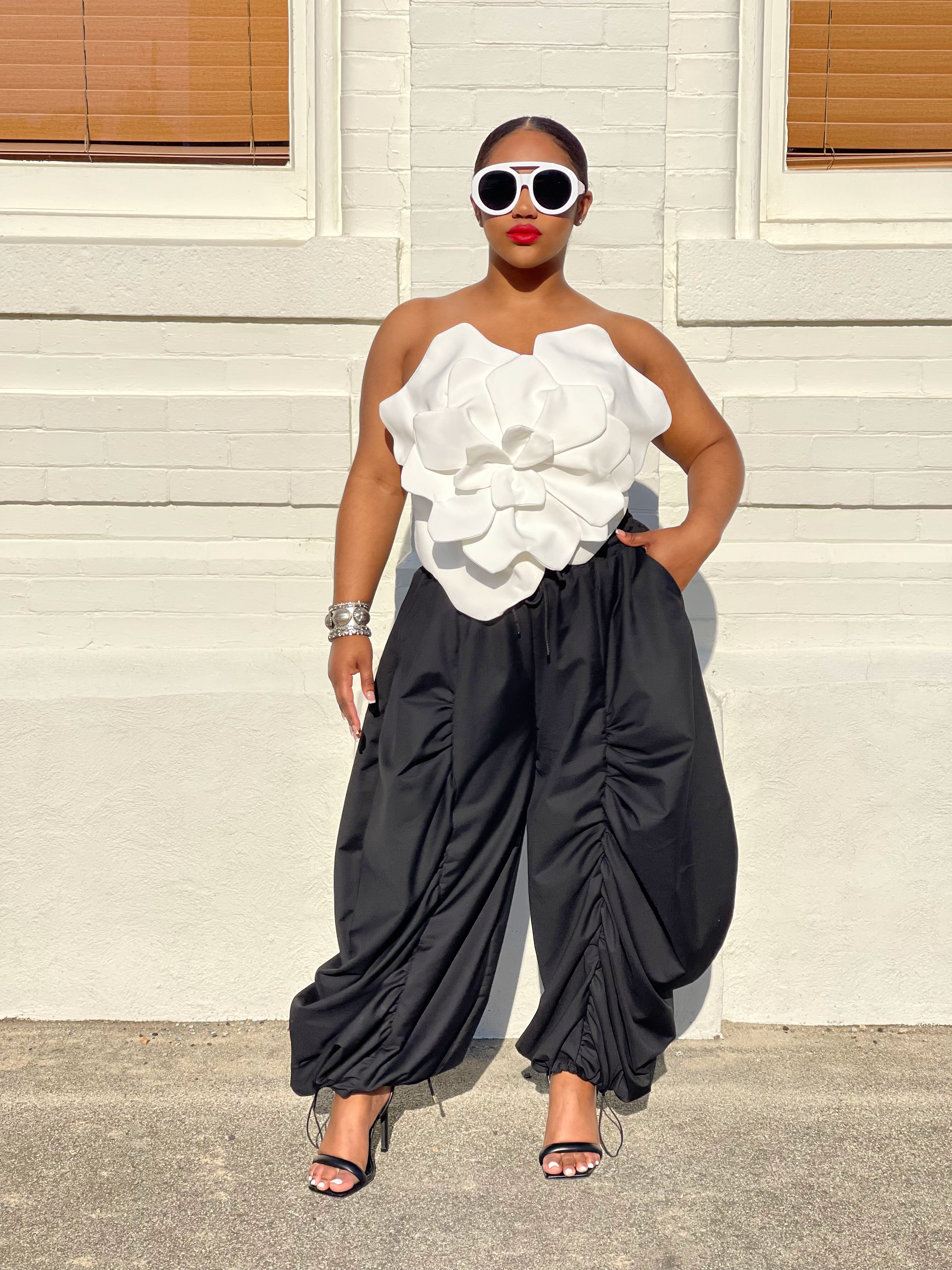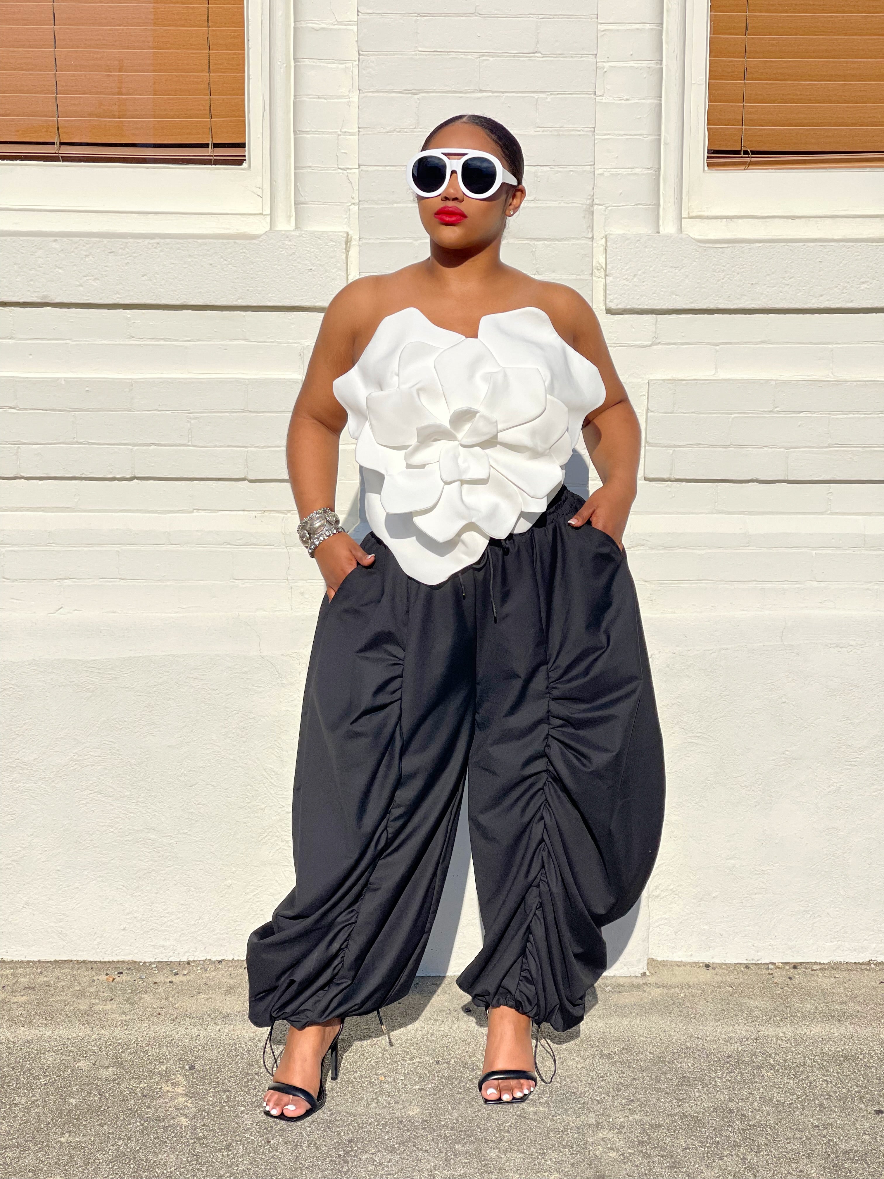 Make a chic statement in these elegant Gwen Ruched Pants. The relaxed fit and ruched ankle design exude sophistication, while the elastic waist and drawstring bottoms offer a comfortable and customizable fit. Complete with side pockets for added convenience. Similar to our hot selling acid washed harem pants, these are a must-have for any fashion-forward wardrobe.